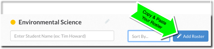 Selecting the Classes from the top menu prompts you to create a class by entering a Class Name, Year (grade), Subject, and selecting a class color. Students can be added to classes one at a time, or you can copy and paste your roster by clicking “Add a Roster.” In a hurry? You can skip adding a roster and just use student card numbers.